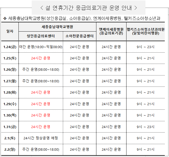 세종시보건소: 1월 28일부터 1월 30일까지 오전 9시부터 오후 6시까지 진료를 제공합니다.