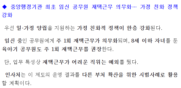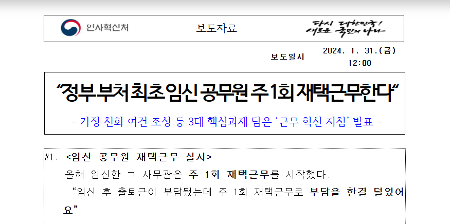 코로나 이후 재택근무가 많이 보편화되었죠? 그런데 이번에 흥미로운 소식을 하나 가져왔어요! 바로 임신한 공무원 분들을 위해 주 1회 재택근무를 시행하게 되었다는 건데요. 정부 인사조직과에서 처음으로 도입된 정책이라고 하니, 어떤 내용인지 함께 살펴보죠!